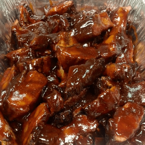 Our pork rib tips come covered with our secret recipe rub then slow smoked for 4-6 hours. These work alone or as a sandwich