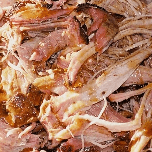Pork shoulder smoked for hours and pulled apart