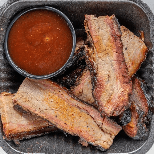 Rubbed with our secret brisket rub then slow smoked 12-14 hours to a very tender and flavorful taste. Served to stand alone, as a sandwich or in our famous meat combos, this juicy brisket is an explosion of flavor.