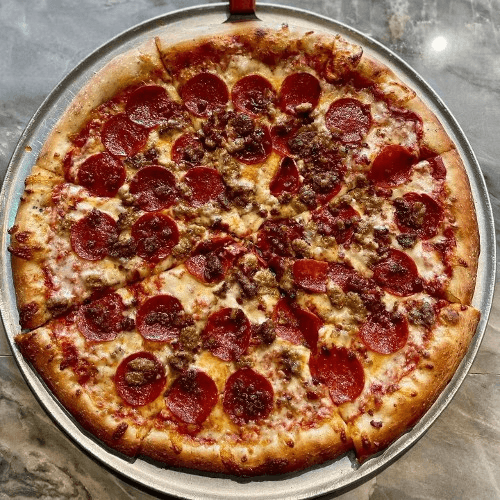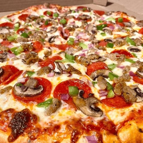 Pepperoni, Sausage, Onion, Green Peppers & Mushrooms