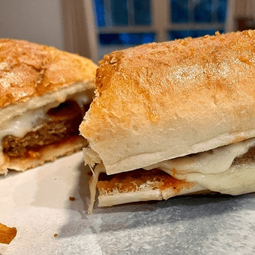 Steakhouse Beef, Homemade Marinara or Mushroom Sauce, Provolone Cheese, Pickles, & Onions on a Honey-Butter Hoagie Bun
