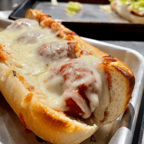 Homemade Meatballs Simmered in Marinara Sauce with Mozzarella on a Hoagie Bun